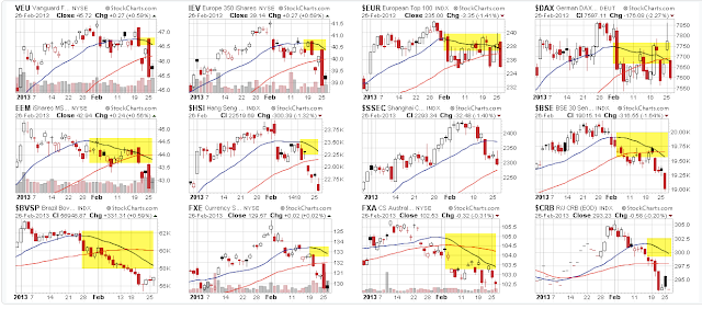 The rest of the world has led the US markets, and their averages are now down sloping (yellow highlights).