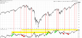 There were two prior periods like today when Vix was consistently below 20. Both lasted 4 years and are notable for having infrequent and shallow (5%) corrections. Coincidentally, the prior periods were 1993-1997 and 2003-2007. Is this a 10 year cycle starting with years ending in '3'? Details are here (post).