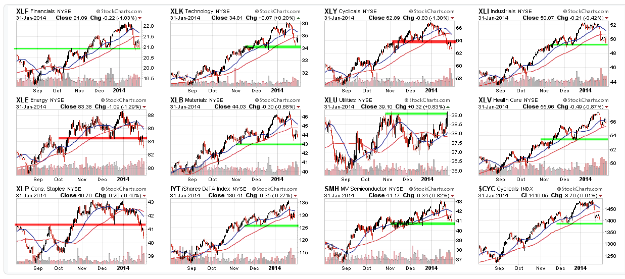 The short story is this: SPY lost its 13-ema on January 23 at 182.8 (close) and hasn't been regained since. That's trend.