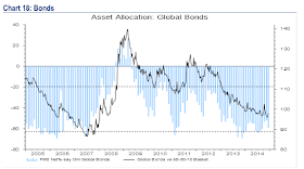 Remarkably, although US bonds have outperformed SPX so far in 2014, fund managers are -59% underweight. Bonds continue to be the most hated asset class and this, in large part, explains why cash balances have not been lower that 4.5% in the past year. For comparison, managers were -38% underweight in May 2013 before the large fall in bond prices. There is a lot of room for bond exposure to rise.