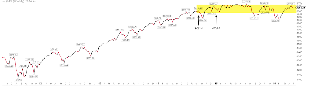 Not coincidentally, the S&P was trading at between 2000-2100 in late 2014, about the same level it's trading at now. There has been almost no net gain in the index since the growth in sales and profits ended.