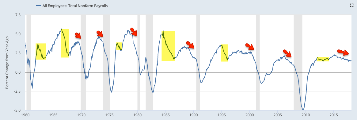 Real (inflation adjusted) GDP growth through 4Q17 was 2.6% yoy. 2.5-5% was common during prior expansionary periods prior to 2006.