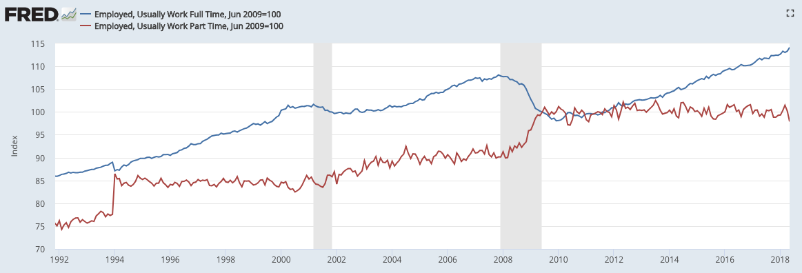 Real (inflation adjusted) GDP growth through 1Q18 was 2.8% yoy, the best growth rate in nearly 3 years. 2.5-5% was common during prior expansionary periods prior to 2006.