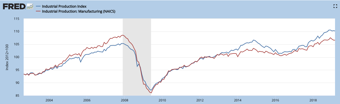 That weakness now looks anomalous: the data from the past month mostly point to positive growth. A recession starting in 2019 is unlikely.