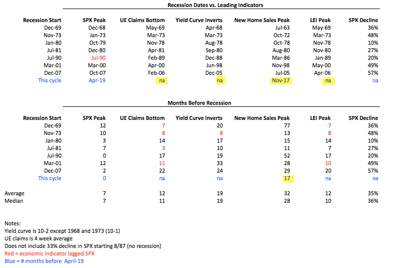 Equity prices typically fall ahead of the next recession, but the macro indictors highlighted above weaken even earlier and help distinguish a 10% correction from an oncoming prolonged bear market. On balance, these indicators are not hinting at an imminent recession (a recent post on this is here).