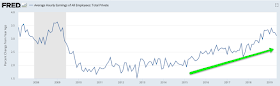 For this reason, it's better to look at the trend; in May, trend employment growth was 1.6% yoy. Until spring 2016, annual growth had been over 2%, the highest since the 1990s. Ahead of a recession, employment growth normally falls, a potential watch out (arrows).