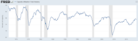 While the macro data is fine, a possible wild card is the escalation in the trade war, which reduces global demand, raises prices and eventually leads to lower investment (from St Louis Fed).