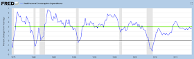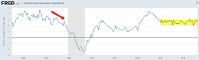 On a monthly basis, real personal consumption expenditures grew 2.7% yoy in May to a new ATH.