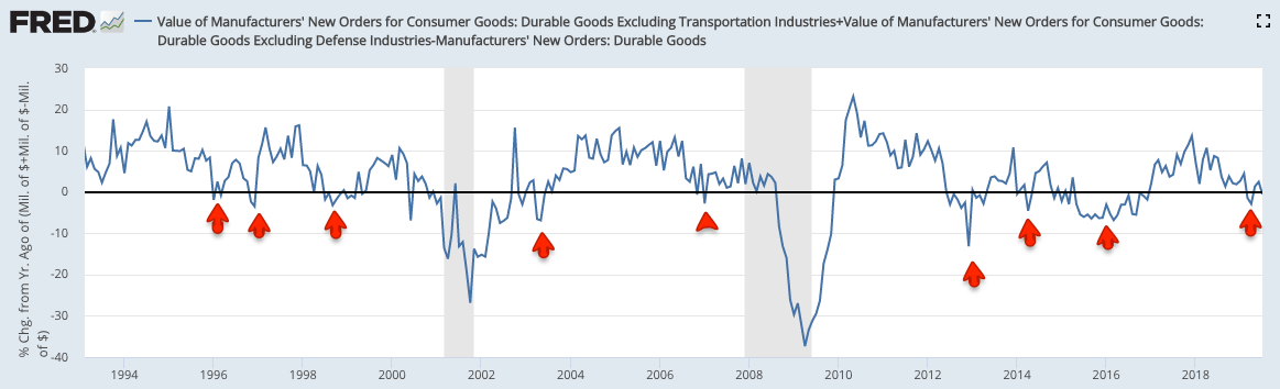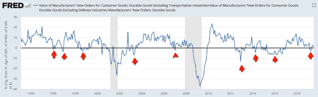 Stripping out the changes in GDP due to inventory produces "real final sales". This is a better measure of consumption growth than total GDP. In 2Q19, this also decelerated, to 1.8% yoy.
