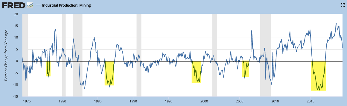 While the macro data is fine, a wild card is the escalation in the trade war, which reduces global demand, raises prices and eventually leads to lower investment (from St Louis Fed).