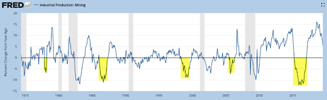 Weakness in total industrial production in 2015-16 was concentrated in the mining sector, with the worst annual fall in more than 40 years. It is not unusual for this part of industrial production to plummet outside of recessions. With the recovery in oil/gas extraction, mining rose 5% yoy in July.