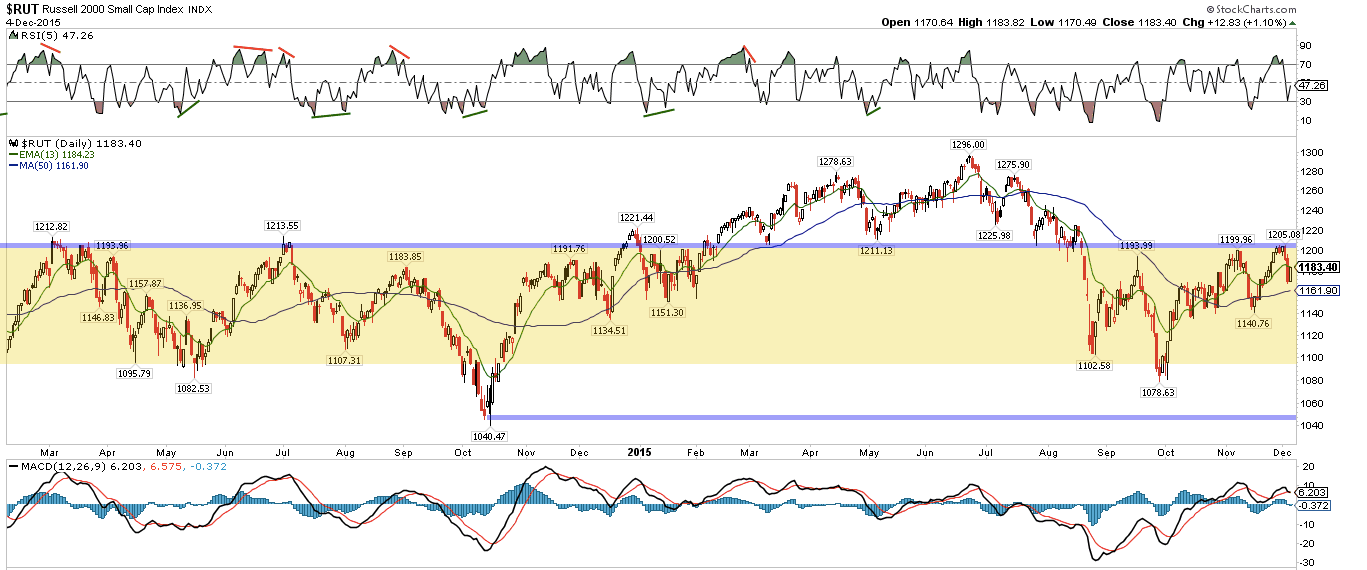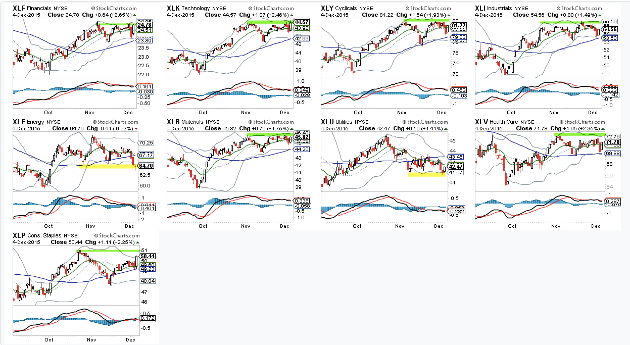 As you can see in the chart above, the pivotal FOMC meeting on December 16 (Day 12) is ahead. At that meeting, the Fed is considered very likely to raise rates for the first time since 2006. The chart above indicates weakness ahead of the meeting and then the traditional "Santa rally" into year-end. Given that the rate increase is likely to be minor and has been very well telegraphed, that might still be the case this year.