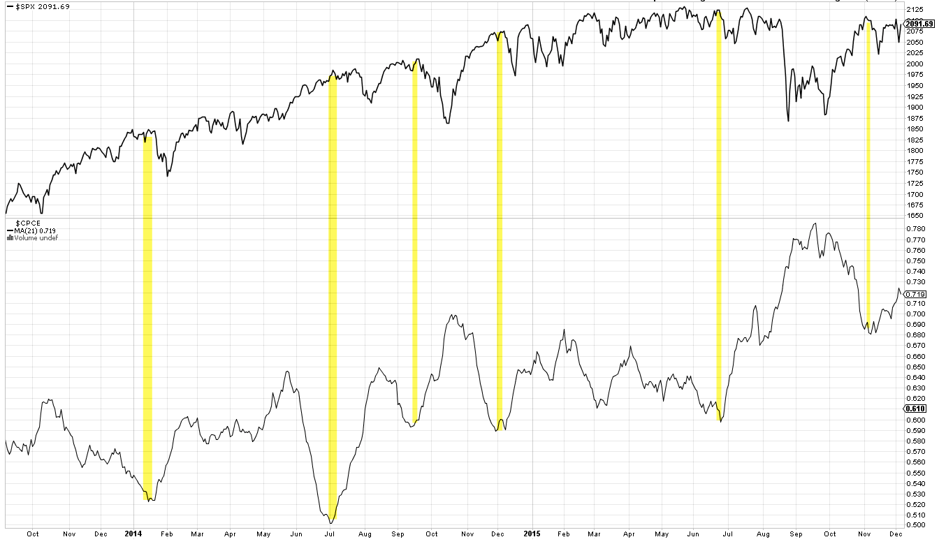 If anything, more bulls are needed; it takes bulls to push a market higher and investors have been tentative. The 21-dma equity-only put/call ratio has been rising the past 3 weeks; a falling ratio supports a move higher in price. Bulls want to see this turn lower into year-end.