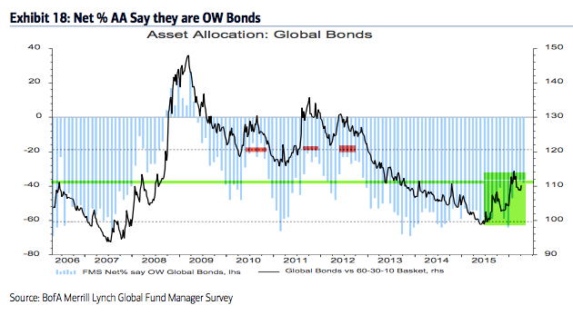 Among the various ways of measuring investor sentiment, the BAML survey of global fund managers is one of the better as the results reflect how managers are allocated in various asset classes. These managers oversee a combined $600b in assets.