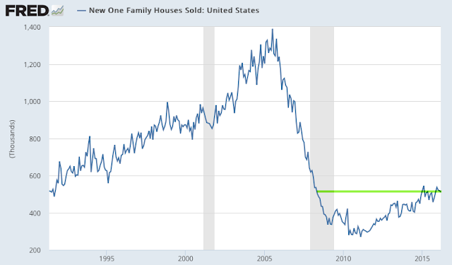 First, new houses sold was 511,000 in March. December was an 8 year high. Growth was 5% over the past year after growing 18% yoy in March 2015.