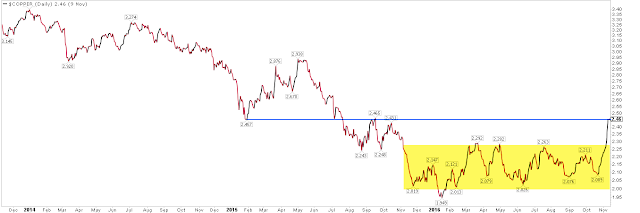 Since then, however, these two have gone in opposite directions. Copper prices fell almost 50% between 2011 and the end of 2015.