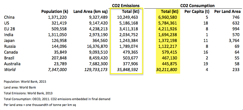 Since each country's final demand affects global emissions, a better measure is CO2 consumption, defined as the amount of CO2 emissions embedded in each country's consumption of goods. This has a significant impact on identifying which countries are ultimately responsible for creating CO2 emissions.